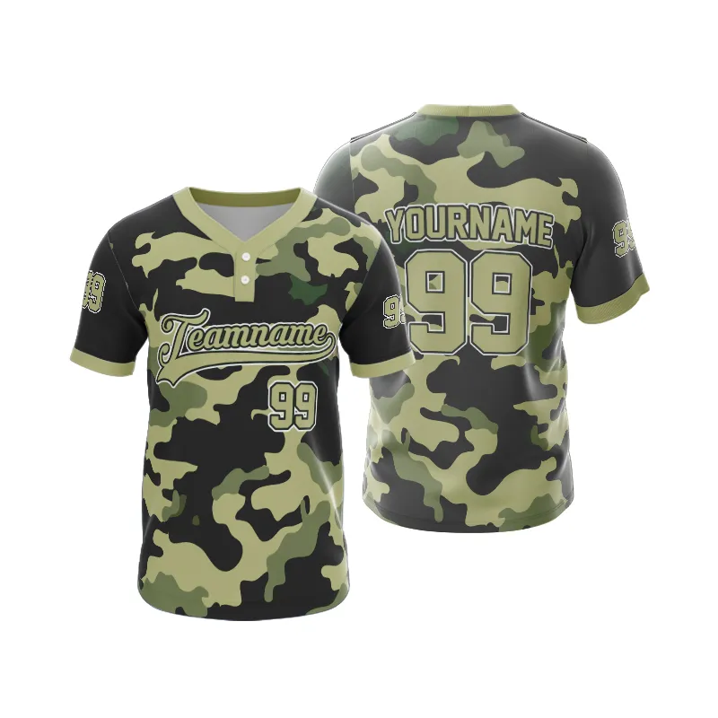 Crafted from 100% polyester, our Custom Camo Softball Jerseys deliver top-tier moisture control and flexibility for intense gameplay. The lightweight, quick-dry fabric helps players stay cool while maintaining freedom of movement in every pitch and swing. With multiple decoration options — sublimation, embroidery, or screen printing — your team logo and details appear crisp and professional. Whether you’re outfitting a local league, corporate team, or promotional squad, these jerseys balance rugged looks with reliable performance.