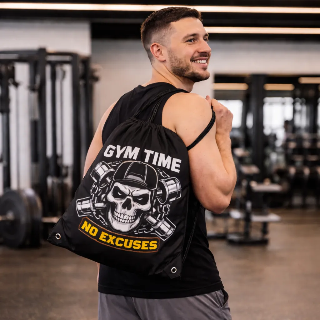The drawstring closure allows quick access before and after workouts, while also functioning as comfortable shoulder straps for easy carrying between home, gym, and training sessions. Whether you’re storing your workout gear or creating branded fitness merchandise, these bags combine practicality with a strong gym-focused style.