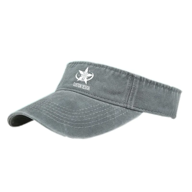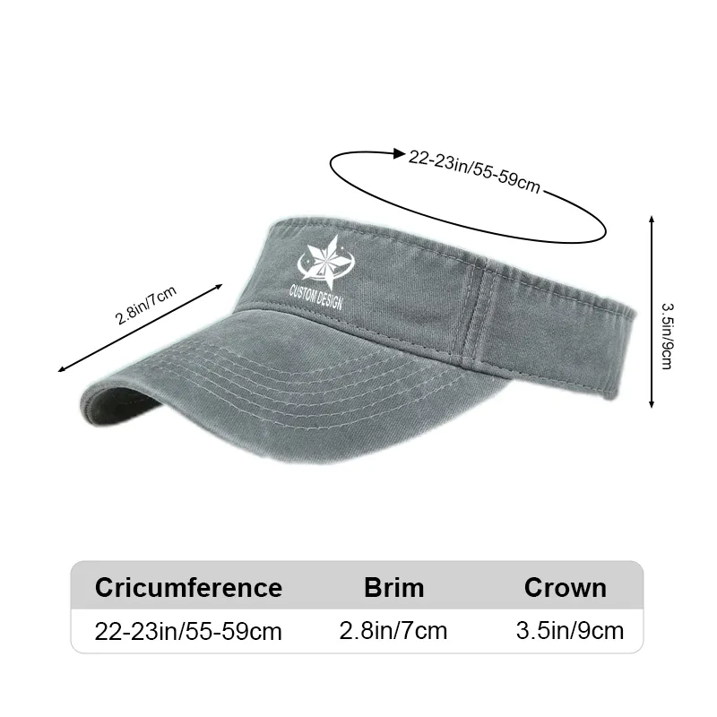 Our custom running visors are made entirely of high-quality cotton, offering a soft, breathable, and comfortable fit for all-day wear. The distressed finish gives each visor a unique, worn-in appearance that adds character and personality to your team or personal style. Your logo or design can be applied using high-quality embroidery, heat transfer, or screen printing to ensure sharp, lasting branding. The adjustable strap closure allows a secure fit for every runner, making these visors ideal for marathons, team outings, or casual wear.