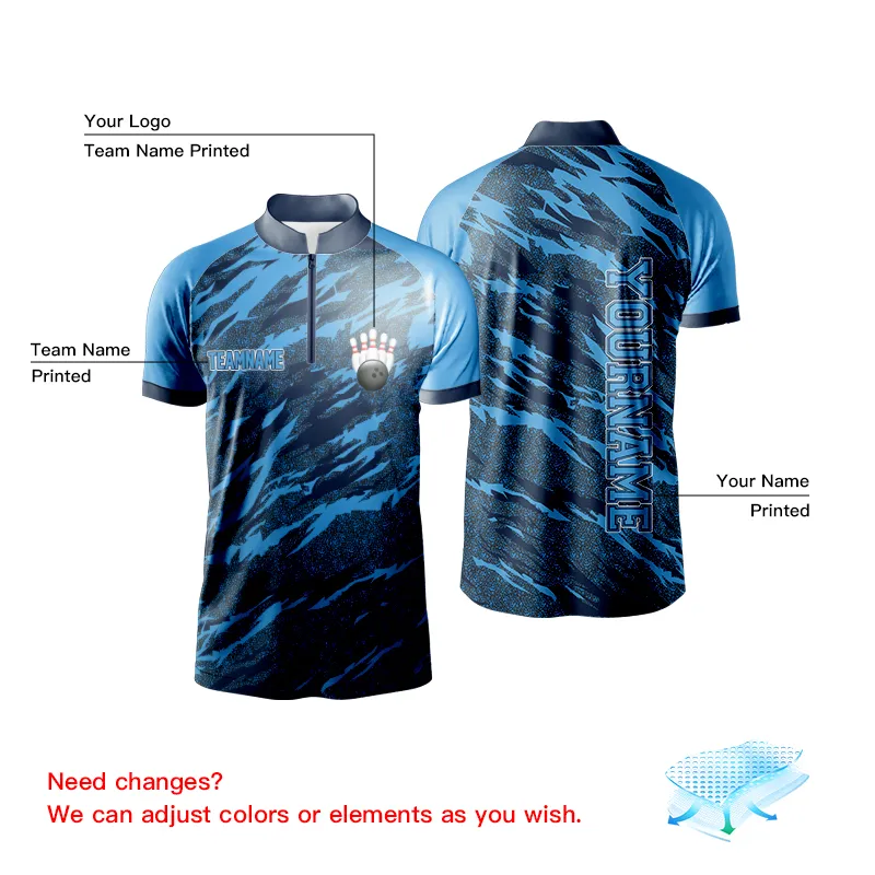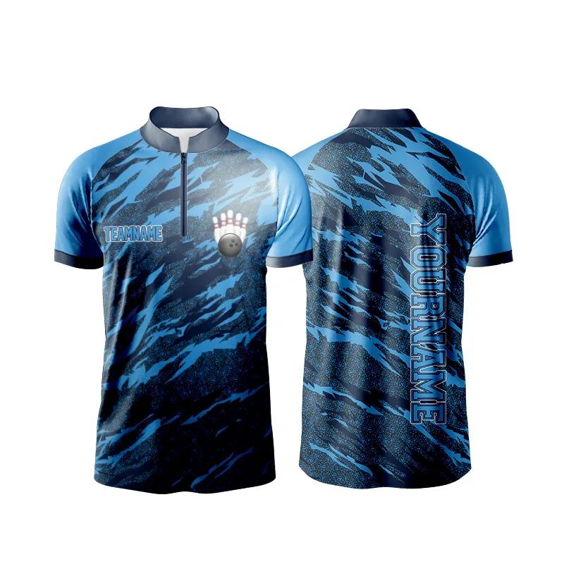 The Custom Sublimated Bowling Jersey is made from high-quality 100% polyester that wicks away moisture while maintaining a smooth, soft feel. Using full sublimation printing, your team logos, names, and patterns are infused directly into the fabric — ensuring vivid, fade-proof colors that stay sharp after every wash. The jersey’s athletic fit allows natural motion and comfort, while optional zip or button collars add a professional touch. Ideal for bowling teams, leagues, or corporate events, it’s the perfect balance of performance and personality.