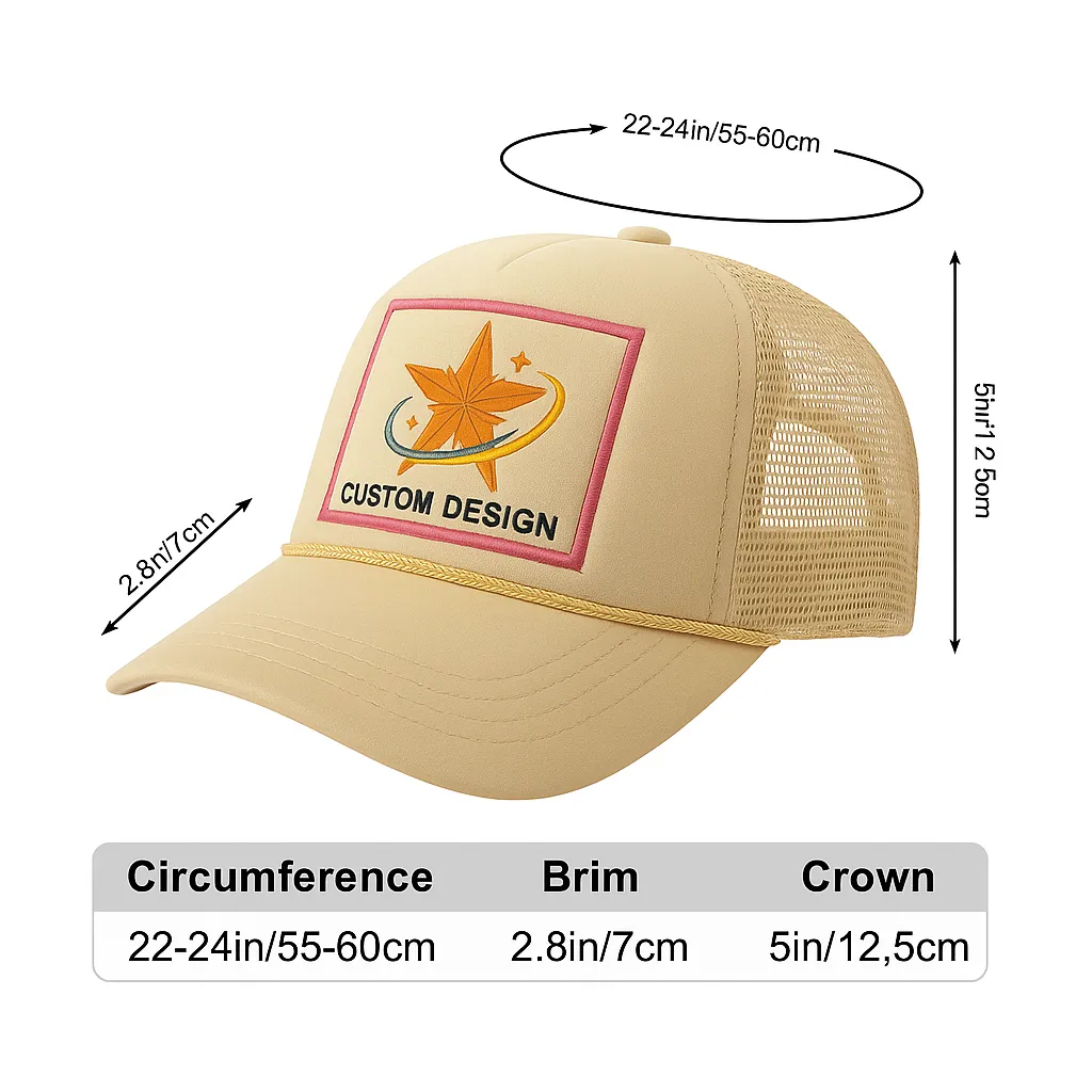Built with a sturdy cotton/polyester blend and a classic mesh back, our custom trucker hats with patches bring timeless style together with modern branding. The patch surface allows for embroidery, woven, leather, or PVC patches, giving your design depth and a professional look. With its curved visor and adjustable snapback, it ensures a comfortable fit for all-day wear. Perfect for businesses, sports teams, or giveaways, this hat makes your brand stand out with a polished yet casual vibe.